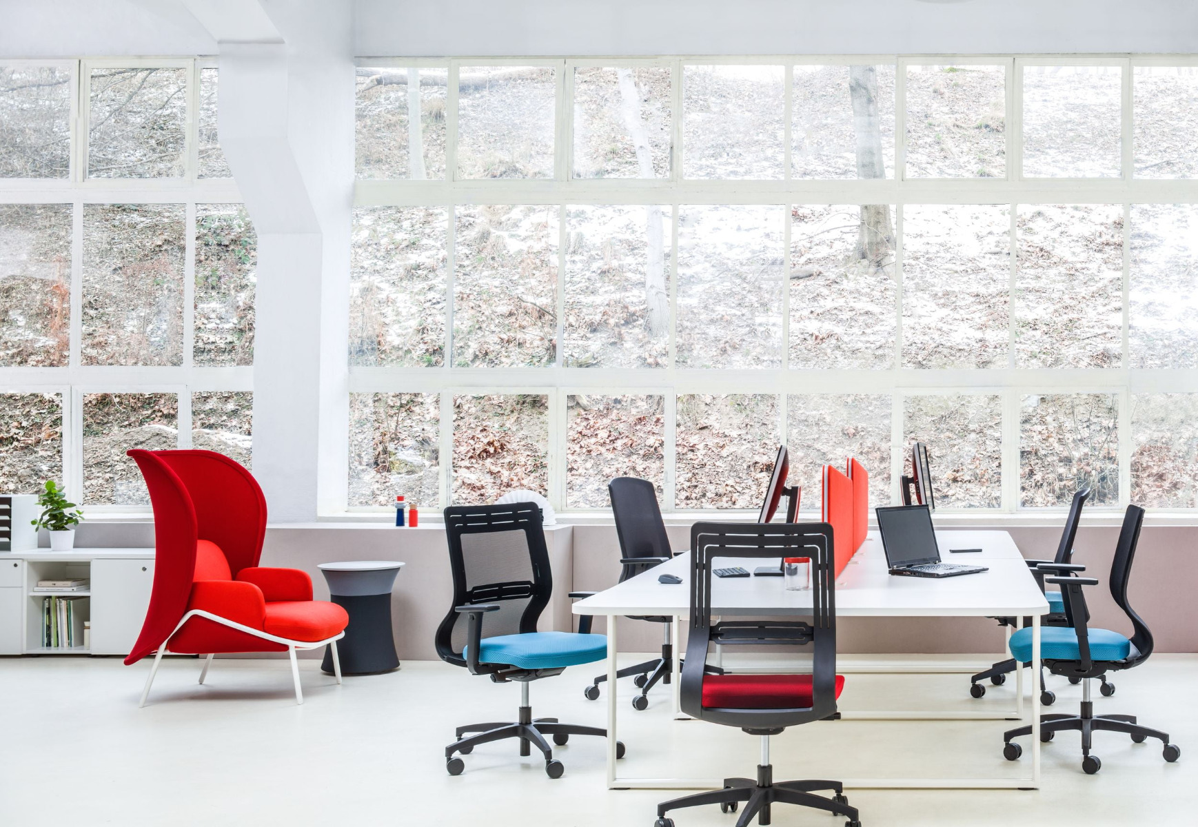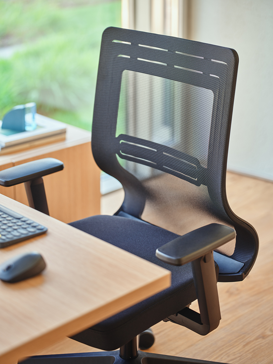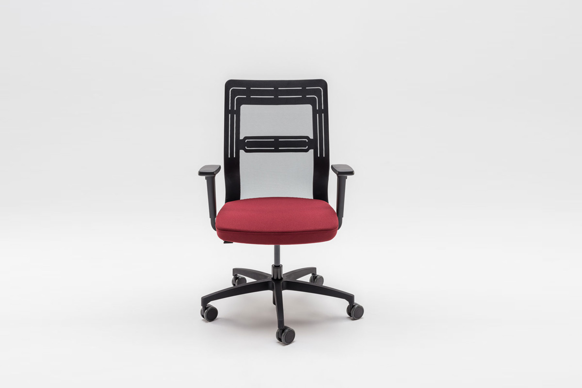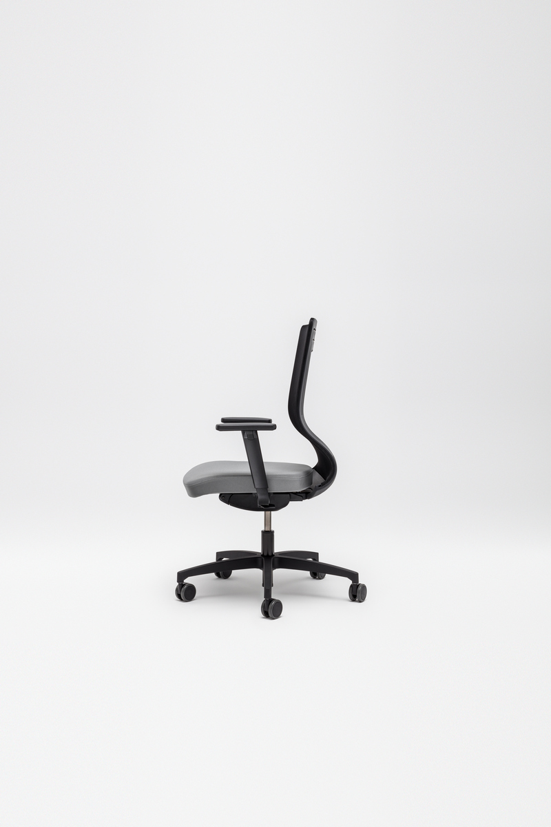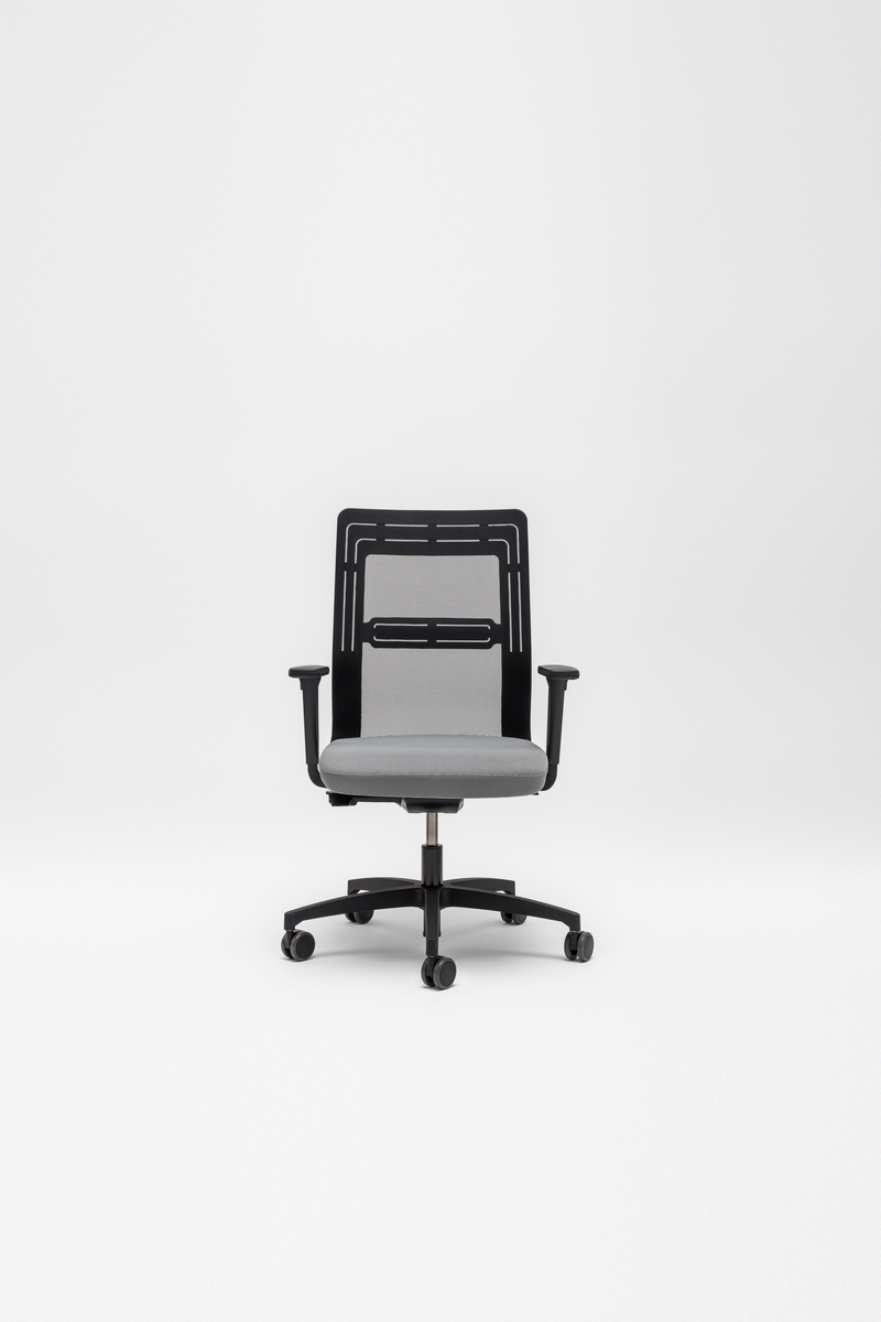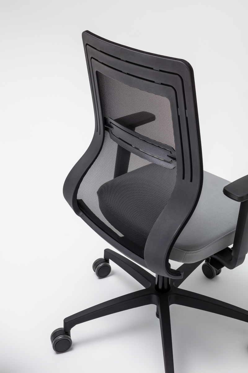 מושב עשוי מקצף בלתי דליק; עומד בתקנים: PN-EN 1335-2:2009; משענת גב מבד רשת נושם; בד רשת פונקציונלי מסוג String, שנוצר במיוחד למשענות גב של כיסאות וניתן למחזור מלא