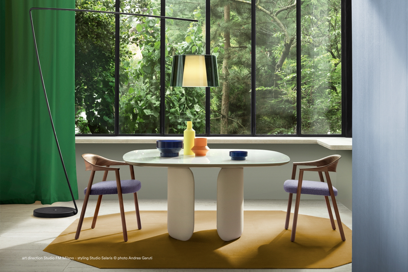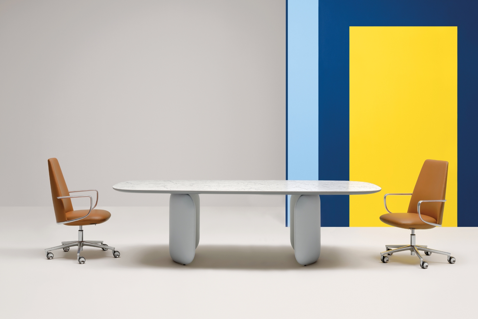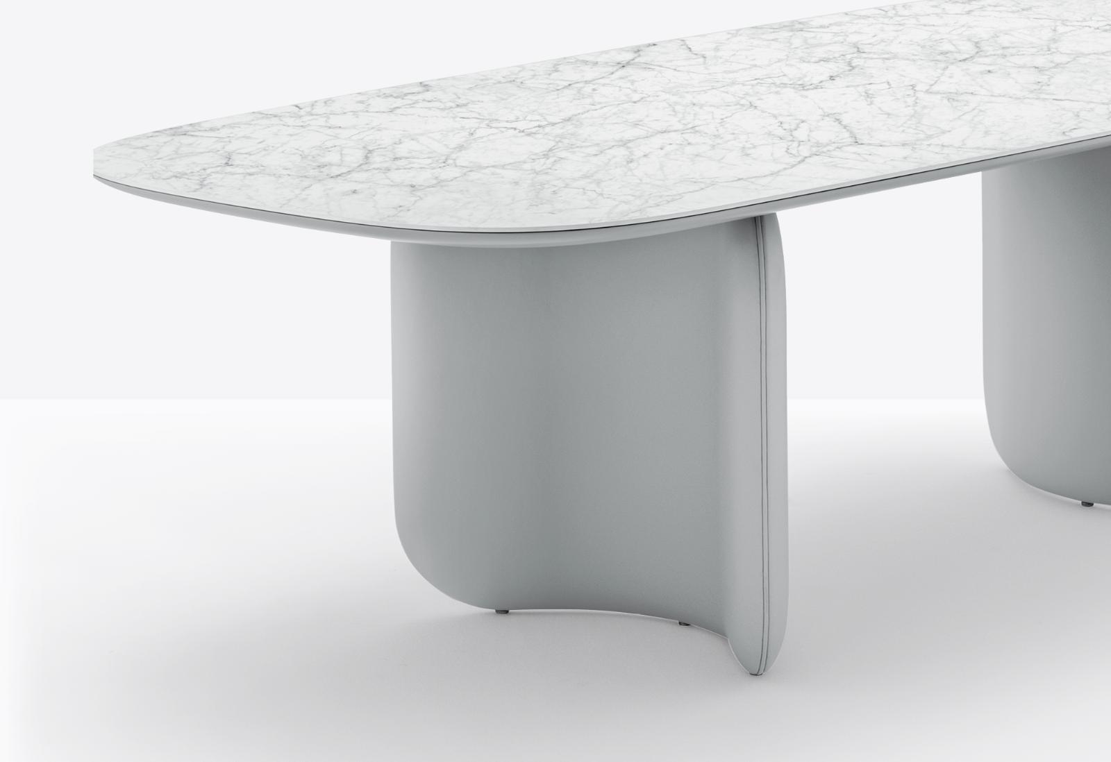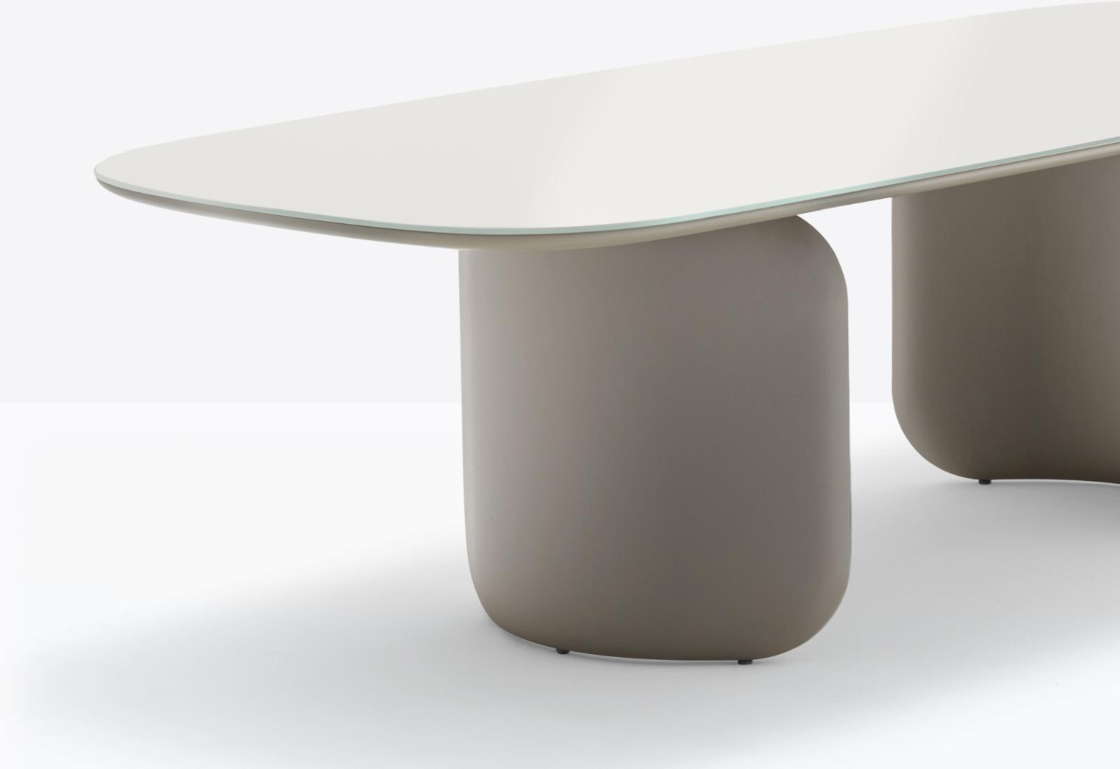 אלומיניום יצוק בעובי משתנה, מעוקל בעדינות, ומחובר באמצעות קורה פלדה חזקה הממוקמת מתחת למשטח העליון.